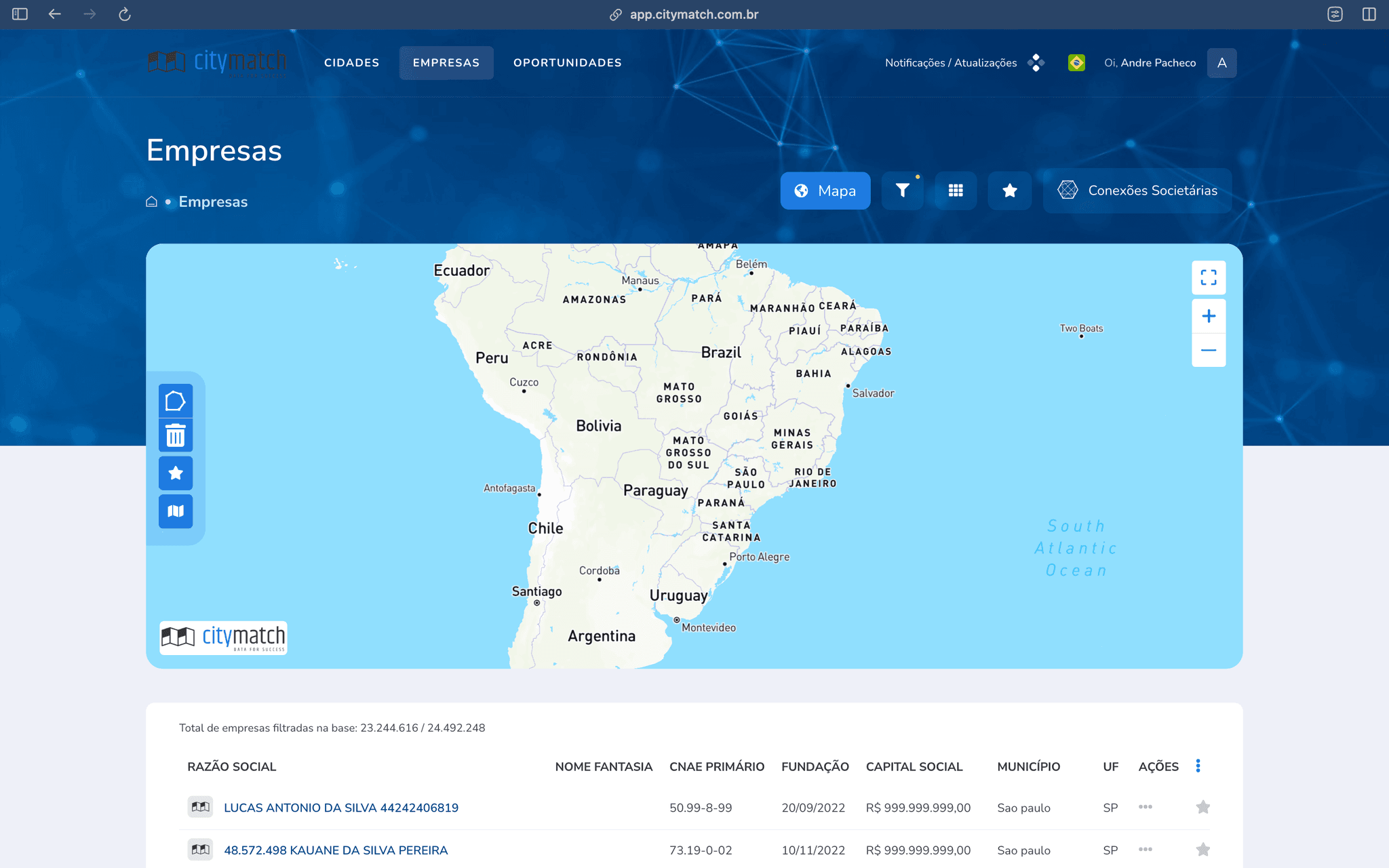 Tenha acesso a base de todas as empresas brasileiras e utilize filtros de busca para identificar empresas e investidores para seu município