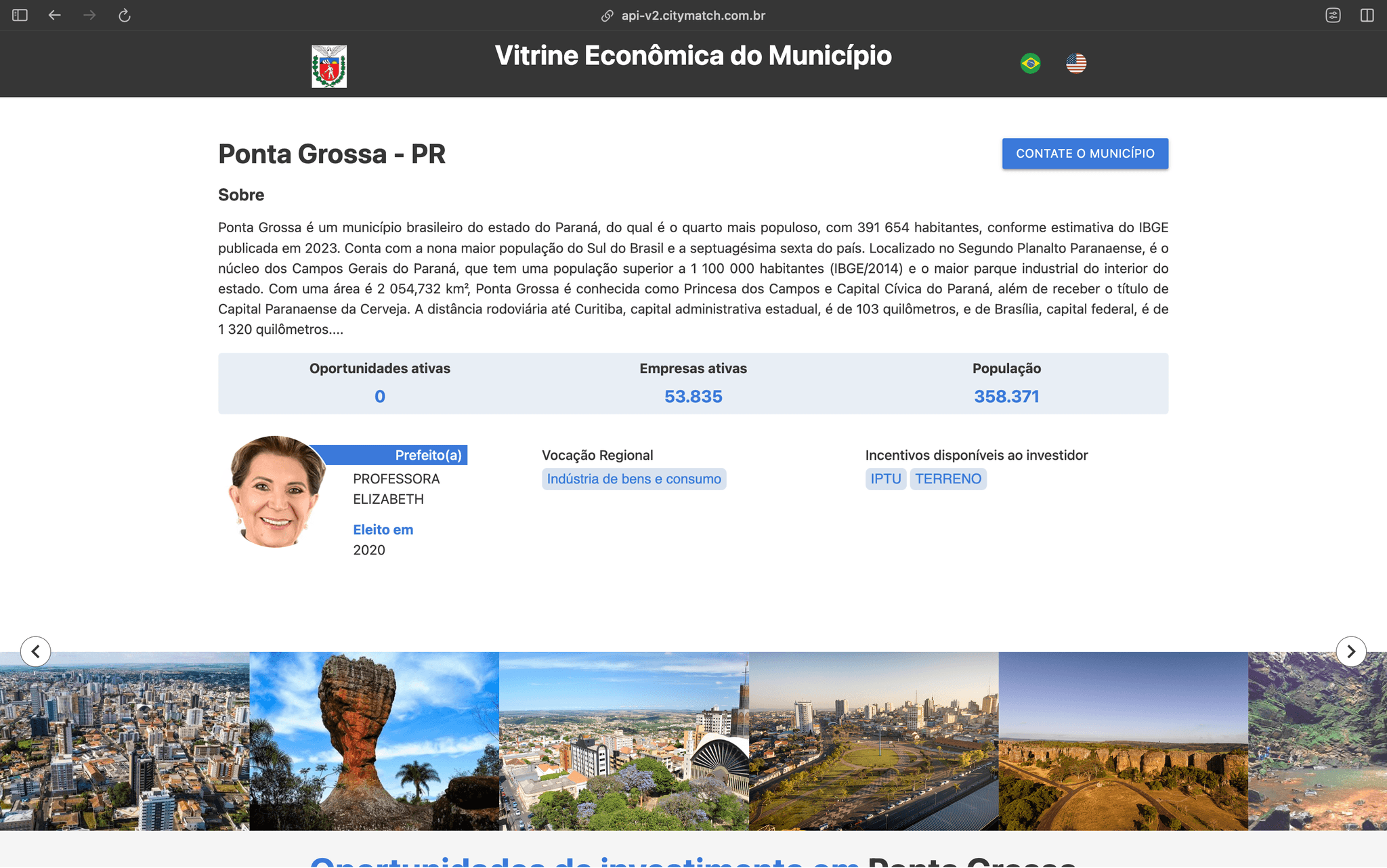 Acesse vitrines econômicas sobre municípios e estados. Conheça todas as oportunidades de negócio, vocações regionais, incentivos fiscais e vantagens oferecidas pelos municípios
